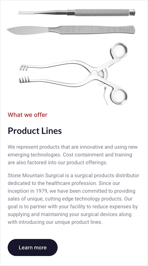 Stone Mountain Surgical, LLC is a distributor of surgical equipment from many different brands. They wanted people to be aware of all of the different brands that people can buy from.