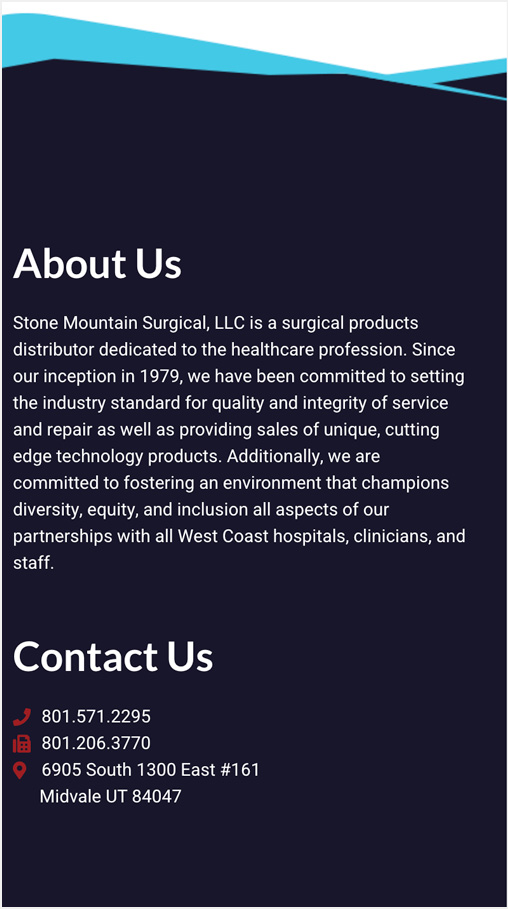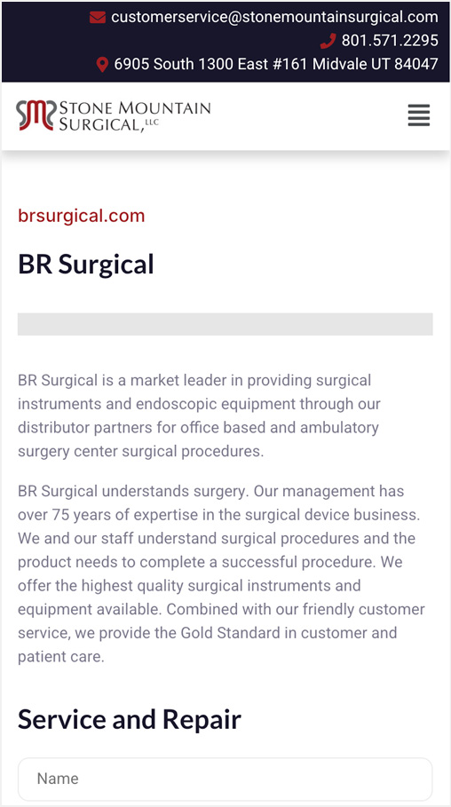 Stone Mountain Surgical, LLC is a surgical products distributor dedicated to the healthcare profession. They are a contract surgical product, distributor and consulting source. One of the main reasons the owner wanted a new website was because the old website was out of date, and the person who was hosting the old website moved across the country and became out of touch. I was then hired to take over, design and build a new website, and to manage the web hosting for them.